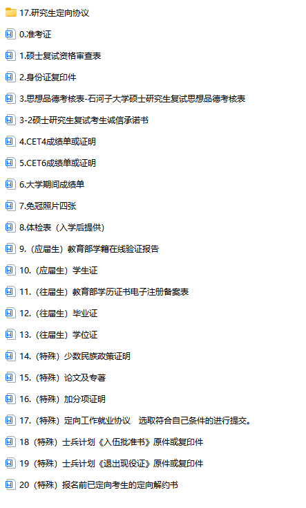 考生須按照教育部和學校招生簡章的相關要求準備以下材料原件及復印件準考證、身份證、學生證(應屆考生)、畢業(yè)證(往屆考生)、學位證(往屆考生)、教育部學籍在線驗證報告(應屆考生)、教育部學歷證書電子注冊備案表(往屆考生)、《石河子大學2024年招收攻讀碩士學位研究生思想政治素質和品德考核表》等材料進行復試資格審核。