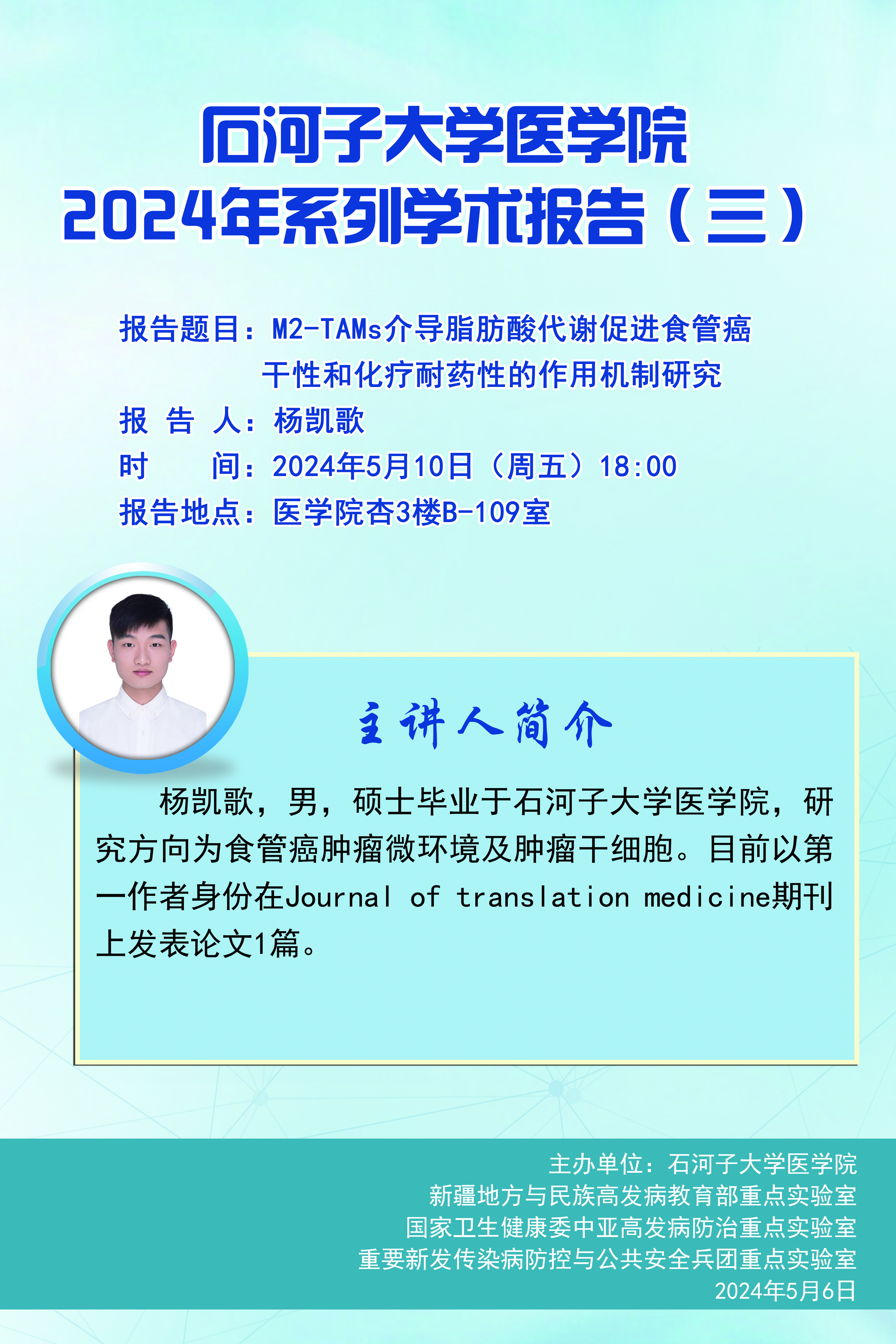 石河子大學(xué)醫(yī)學(xué)院2024年系列學(xué)術(shù)報(bào)告(三)