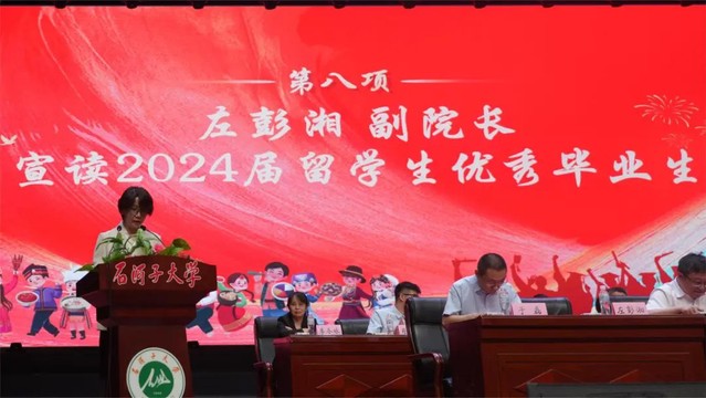 大會第八項 石河子大學(xué)醫(yī)學(xué)院副院長左彭湘老師宣讀2024屆優(yōu)秀留學(xué)生畢業(yè)生名單。