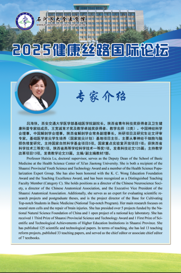 為深入踐行 "一帶一路 "倡議 ,推動 "健康絲綢之路 "建設, 由石 河子大學主辦 ,石河子大學醫(yī)學院、石河子大學藥學院、石河子大 學第一附屬醫(yī)院及石河子大學紅花產(chǎn)業(yè)研究院承辦的第一屆“健康絲 路國際論壇” ,將于2025年5月17日在有“戈壁明珠”之稱的新疆石河 子市舉行。