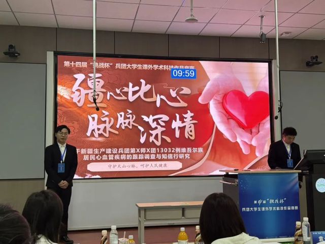6月15—16日,由兵團(tuán)團(tuán)委、兵團(tuán)科協(xié)、兵團(tuán)教育局、兵團(tuán)學(xué)聯(lián)聯(lián)合主辦,塔里木大學(xué)承辦的第十四屆“挑戰(zhàn)杯”兵團(tuán)大學(xué)生課外學(xué)術(shù)科技作品競賽終審決賽圓滿收官。我院何佳、郭恒、羅丹共同指導(dǎo)的哲學(xué)社會(huì)科學(xué)類社會(huì)調(diào)查報(bào)告《“疆心”比心,脈脈深情——基于新疆生產(chǎn)建設(shè)兵團(tuán)第X師X團(tuán)居民心血管疾病的跟蹤調(diào)查與知信行研究》項(xiàng)目,憑借扎實(shí)的調(diào)研成果與創(chuàng)新價(jià)值,從眾多參賽作品中脫穎而出,榮獲二等獎(jiǎng)。