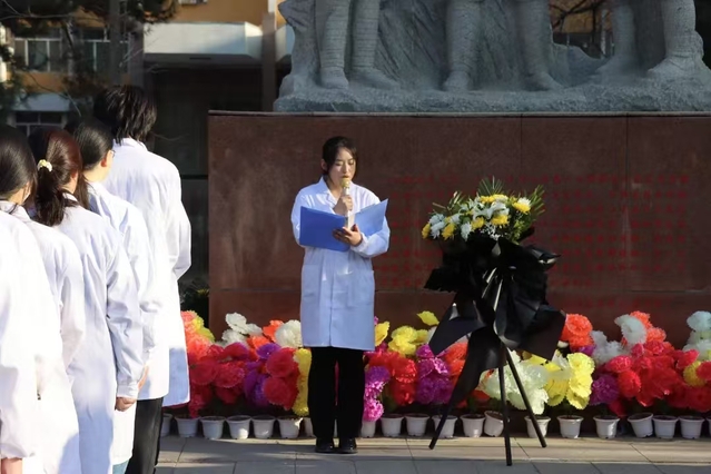 為深切緬懷革命先烈,賡續(xù)紅色血脈,引導(dǎo)廣大團(tuán)員青年深入學(xué)習(xí)革命先輩的光輝事跡,厚植家國(guó)情懷,強(qiáng)化歷史使命感,培育新時(shí)代愛(ài)國(guó)主義精神。4月4日上午,醫(yī)學(xué)院、藥學(xué)院、護(hù)士學(xué)校于南區(qū)王震將軍塑像前開(kāi)展了“青春奮進(jìn),薪火相傳”清明祭英烈主題活動(dòng),共計(jì)110名團(tuán)學(xué)骨干參加此次活動(dòng)。
