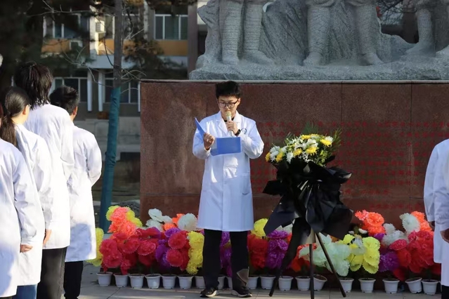 田凱超作醫(yī)學(xué)院學(xué)生代表發(fā)言。他給同學(xué)們介紹了一批批為實(shí)現(xiàn)民族獨(dú)立、人民解放,國(guó)家富強(qiáng)、人民幸福而獻(xiàn)出生命烈士的事跡,并呼吁同學(xué)們要繼承英烈們的奮斗精神,面對(duì)困難和挑戰(zhàn),要有不屈不撓的斗志,不斷追求卓越,為國(guó)家的繁榮昌盛而努力。