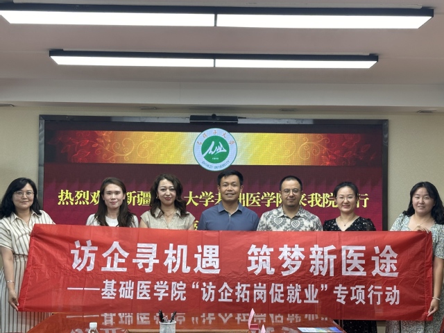 為落實(shí)教育部關(guān)于深化產(chǎn)教融合、促進(jìn)畢業(yè)生就業(yè)的工作要求,石河子大學(xué)醫(yī)學(xué)院與新疆醫(yī)科大學(xué)基礎(chǔ)醫(yī)學(xué)院聯(lián)合開(kāi)展“訪企拓崗促就業(yè)”專項(xiàng)行動(dòng)。2025年6月20日,新疆醫(yī)科大學(xué)基礎(chǔ)醫(yī)學(xué)院副院長(zhǎng)熱比亞·努力攜學(xué)工辦副主任符潔及畢業(yè)班班主任迪麗娜爾·波拉提一行來(lái)我院交流,石河子大學(xué)醫(yī)學(xué)院黨委副書記雷建鵬、繼續(xù)教育中心主任郅潔、學(xué)辦主任朱偉娟、就業(yè)聯(lián)絡(luò)員張娜及教師代表阿米爾·阿卜力孜參加此次活動(dòng)。此次活動(dòng)通過(guò)校際深度合作,共同探索人才培養(yǎng)與就業(yè)服務(wù)協(xié)同發(fā)展新路徑。