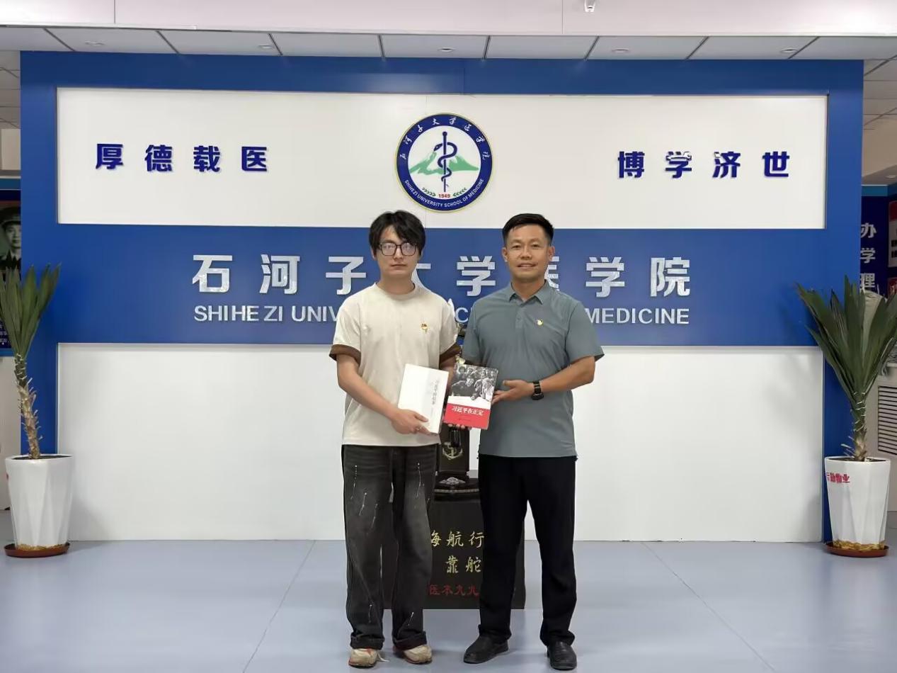 圖5:雷建鵬帶隊慰問全國志愿服務(wù)項目大賽銀獎、全國紅十字志愿服務(wù)項目大賽金獎獲得者——影像2021級1班本科生羅宏濤
