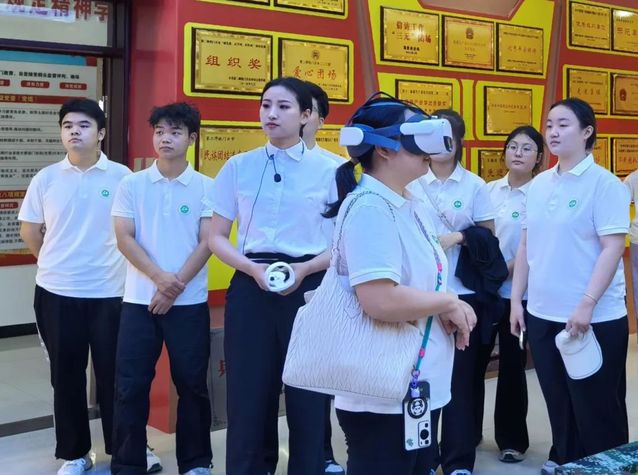 隨后,師生們體驗(yàn)了團(tuán)史館引入的數(shù)字VR黨建系統(tǒng)。戴上VR設(shè)備,大家“穿越”到井岡山革命根據(jù)地、延安窯洞等紅色場景,在虛擬環(huán)境中聆聽革命故事、參與互動教學(xué),讓黨史學(xué)習(xí)教育從“靜態(tài)觀看”變?yōu)椤皠討B(tài)參與”。