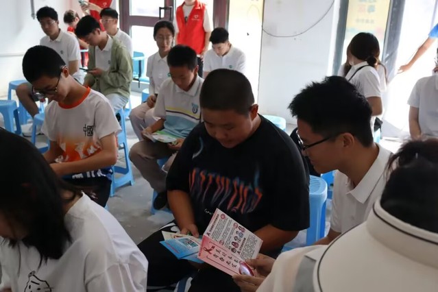 活動現(xiàn)場,實踐團(tuán)成員身著整齊服裝,將精心設(shè)計、內(nèi)容豐富的禁毒防艾宣傳三折頁,遞到每一位同學(xué)手中。團(tuán)隊成員高晨偉,手持三折頁,認(rèn)真地向身邊的青少年講解,提醒大家警惕偽裝巧妙的“上頭電子煙”和“聰明藥”,告誡青少年千萬不能因好奇嘗試;團(tuán)隊成員向當(dāng)?shù)鼐用窨破樟税滩⊥ㄟ^性、血液、母嬰傳播的知識,分享了不共用針具等預(yù)防措施,還強調(diào)了吸毒者共用針具會加大艾滋傳播風(fēng)險,號召大家遠(yuǎn)離毒品就是預(yù)防艾滋。同學(xué)聽得十分入神,收獲滿滿。