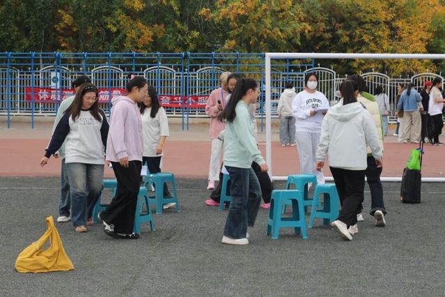 活動(dòng)中,大家手臂搭著彼此的肩膀,互相攙扶,調(diào)整節(jié)奏后繼續(xù)前進(jìn)。各比賽場(chǎng)地氣氛熱烈,同學(xué)們?cè)诒荣愔谢ハ喙膭?lì),在協(xié)作中增進(jìn)了解。在備受期待的搶凳子游戲環(huán)節(jié)中,老師們與同學(xué)們同場(chǎng)競(jìng)技,將現(xiàn)場(chǎng)氣氛推向高潮。