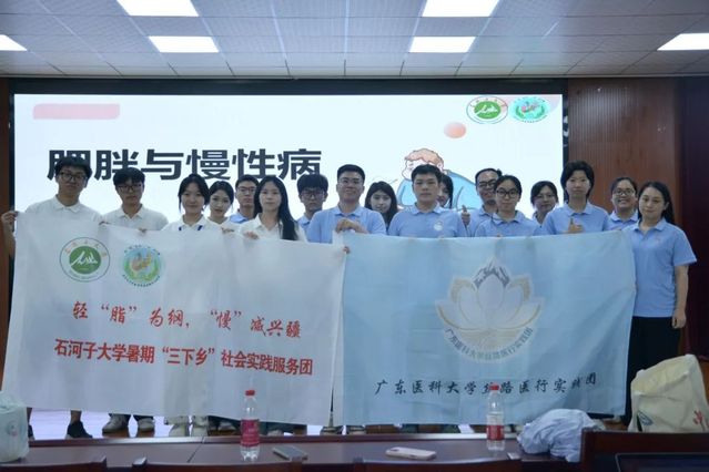 圖為“輕‘脂’為綱,‘慢’減興疆”實(shí)踐團(tuán)攜手廣東醫(yī)科大學(xué)絲路醫(yī)行實(shí)踐團(tuán)進(jìn)行肥胖與慢性病宣講