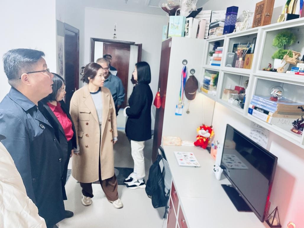 張書記一行首先參觀了公寓內(nèi)的自習(xí)室、教室、洗衣房、食堂等公共區(qū)域,詳細(xì)查看了這些區(qū)域的設(shè)施和使用情況。隨后,他們實(shí)地檢查了留學(xué)生宿舍的內(nèi)外觀,重點(diǎn)關(guān)注了衛(wèi)生環(huán)境和安全狀況。張書記對(duì)宿舍衛(wèi)生情況表示肯定,但也提出了進(jìn)一步改進(jìn)的建議,以確保留學(xué)生們有一個(gè)更加舒適和安全的學(xué)習(xí)生活環(huán)境。
