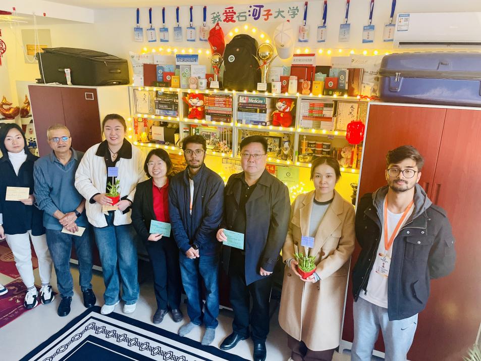 在與留學(xué)生們的親切交談中,張書記詳細(xì)了解了同學(xué)們的生活學(xué)習(xí)情況、實(shí)際困難及需求。他特別關(guān)注了留學(xué)生們?cè)趯W(xué)習(xí)上的挑戰(zhàn)和語言學(xué)習(xí)上的進(jìn)步。張書記勉勵(lì)同學(xué)們要志存高遠(yuǎn),腳踏實(shí)地,刻苦學(xué)習(xí),合理規(guī)劃,努力提高自身的學(xué)習(xí)能力和專業(yè)素質(zhì)。張書記強(qiáng)調(diào),留學(xué)生們應(yīng)充分利用在華留學(xué)的機(jī)會(huì),加強(qiáng)對(duì)漢語和中國文化的學(xué)習(xí)。他鼓勵(lì)留學(xué)生們努力做中外文化交流的使者,通過自身的努力和學(xué)習(xí),促進(jìn)中外文化的交流與理解。