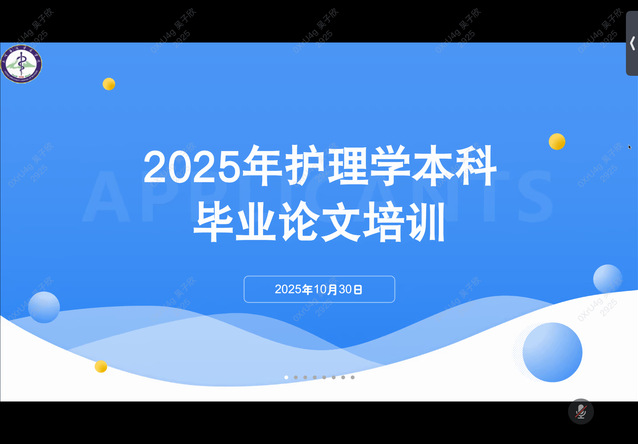 為規(guī)范2026屆護(hù)理學(xué)本科畢業(yè)論文工作,明確開題報(bào)告撰寫要求,2025年10月30日20:30,石河子大學(xué)醫(yī)學(xué)院通過騰訊會(huì)議舉辦“2026屆護(hù)理學(xué)本科畢業(yè)論文安排及開題報(bào)告撰寫培訓(xùn)”,2026屆護(hù)理本科畢業(yè)論文指導(dǎo)老師及2026屆護(hù)理學(xué)專業(yè)學(xué)生參與本次培訓(xùn),此次培訓(xùn)由姬春老師主持。