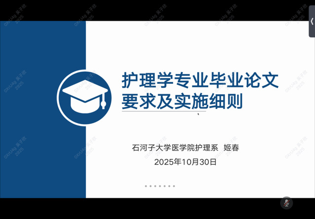 為規(guī)范2026屆護理學本科畢業(yè)論文工作,明確開題報告撰寫要求,2025年10月30日,護理學系通過騰訊會議舉辦“2026屆護理學本科畢業(yè)論文安排及開題報告撰寫培訓”,全體論文指導老師及2026屆護理學專業(yè)學生參與本次培訓,此次培訓由姬春老師主持。