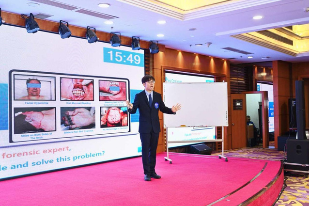 在核心環(huán)節(jié)“來(lái)華留學(xué)醫(yī)學(xué)本科教育青年教師英語(yǔ)授課展示”中,醫(yī)學(xué)院彭昊老師以“Introduction of Personal Identification of Biological Samples”為授課主題進(jìn)行了精彩展示。彭昊作為醫(yī)學(xué)院來(lái)華留學(xué)生教育青年教師骨干力量,長(zhǎng)期深耕來(lái)華留學(xué)醫(yī)學(xué)教育一線,積累了豐富的跨文化教學(xué)經(jīng)驗(yàn)。在展示現(xiàn)場(chǎng),他通過(guò)生動(dòng)的案例解析、以清晰的教學(xué)邏輯、流利的英語(yǔ)表達(dá)和富有感染力的授課風(fēng)格,贏得了點(diǎn)評(píng)專家和同行們的高度認(rèn)可。