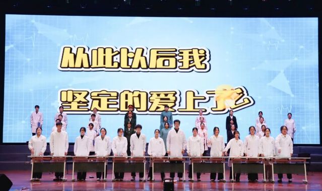 舞臺(tái)音樂劇《曦光萬里:白袍筑夢(mèng)行》38位演員通過歌、舞、劇形式,再現(xiàn)了醫(yī)學(xué)生從懵懂入學(xué)到立志從醫(yī)的完整心路歷程。
