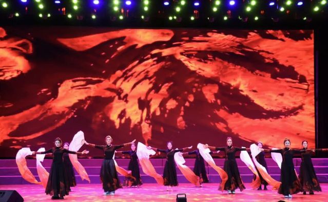 序章中,民族舞蹈串燒《逐光而舞·民族同心》熱情開場(chǎng)。24位舞者以精湛舞姿串聯(lián)起哈薩克族舞蹈的奔放與維吾爾族舞蹈的靈動(dòng),絢麗的服飾與明快樂曲交織,生動(dòng)展現(xiàn)了天山腳下各族人民親如一家的和諧畫卷。