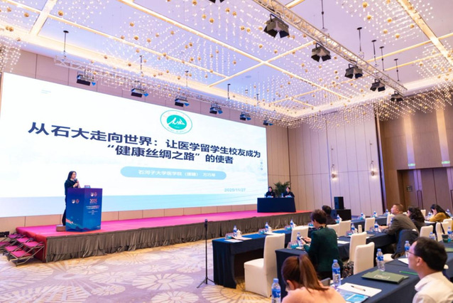 2025年11月27日,由中國(guó)教育國(guó)際交流協(xié)會(huì)主辦的2025年來(lái)華留學(xué)生醫(yī)學(xué)教育學(xué)術(shù)年會(huì)在河北石家莊隆重召開(kāi)。石河子大學(xué)醫(yī)學(xué)院副院長(zhǎng)萬(wàn)巧琴教授受邀參會(huì),并以《從石大走向世界:讓醫(yī)學(xué)留學(xué)生校友成為“健康絲綢之路”的使者》為題作大會(huì)主旨報(bào)告,向全國(guó)醫(yī)學(xué)教育領(lǐng)域同行系統(tǒng)分享了學(xué)校在來(lái)華醫(yī)學(xué)留學(xué)生培養(yǎng)中的創(chuàng)新實(shí)踐與思考,引發(fā)了與會(huì)代表的熱烈反響和廣泛關(guān)注。