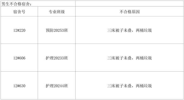 需改進(jìn)宿舍公示: