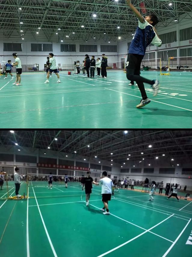 羽球場(chǎng)上,醫(yī)學(xué)院學(xué)子身著統(tǒng)一隊(duì)服,在場(chǎng)地上閃轉(zhuǎn)騰挪,這般靈巧迅捷。每一次揮拍都仿佛沖破氣流,讓羽毛球在空中劃出一道道清晰的白色軌跡。