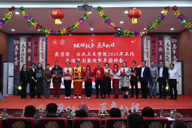在歡聲笑語中,“騏驥躍春,醫(yī)啟新程”醫(yī)學院、公共衛(wèi)生學院2025年工作總結表彰暨迎新年團拜會圓滿落幕。新的一年,醫(yī)學院、公共衛(wèi)生學院全體教職工將以此次團拜會為契機,帶著新的希望與憧憬,以更加飽滿的熱情、更加務實的作風、更加昂揚的斗志,攜手并肩、砥礪前行,為學院高質量發(fā)展注入新動能,為醫(yī)學教育與公共衛(wèi)生事業(yè)的進步貢獻更大力量!