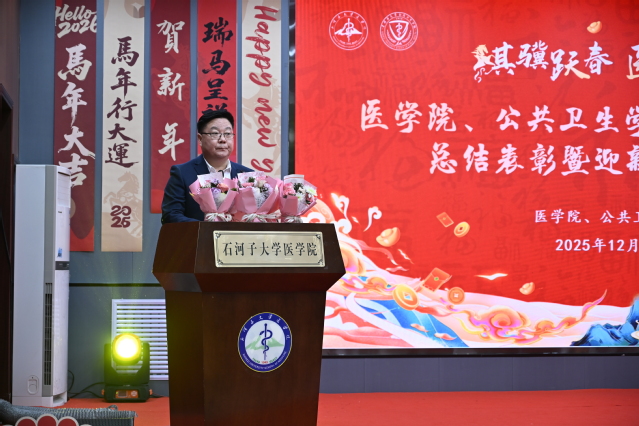 2025年12月31日下午,“騏驥躍春,醫(yī)啟新程”醫(yī)學院、公共衛(wèi)生學院2025年工作總結表彰暨迎新年團拜會在南區(qū)學術報告廳隆重舉行。北京大學公共衛(wèi)生學院副院長、石河子大學醫(yī)學院、公共衛(wèi)生學院特聘教授王海俊,石河子大學教務處處長李思源等醫(yī)學導師、石河子大學第一附屬醫(yī)院(臨床醫(yī)學院)、石河子大學附屬中醫(yī)醫(yī)院(兵團中醫(yī)醫(yī)院)、石河子大學醫(yī)學院第三附屬醫(yī)院(第八師石河子市總醫(yī)院)等附屬單位領導嘉賓以及醫(yī)學院、公共衛(wèi)生學院領導班子成員和全體教職工齊聚一堂,共憶耕耘歲月,共話發(fā)展藍圖,共度辭舊迎新美好時刻。