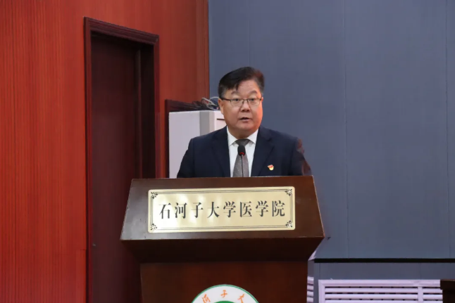 圖為石河子大學(xué)黨委常委、副校長(zhǎng)、組織部部長(zhǎng)李魯華講話