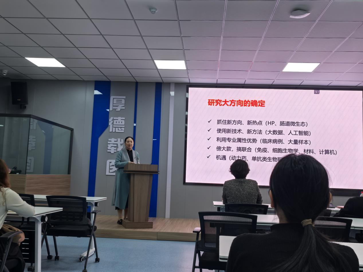 會(huì)議還特別邀請(qǐng)醫(yī)學(xué)院陳雪玲教授分享了項(xiàng)目申報(bào)經(jīng)驗(yàn)并作基金撰寫培訓(xùn)。陳老師結(jié)合自身申報(bào)經(jīng)驗(yàn),從指南的理解、題目的確定、科學(xué)問題的凝練、研究?jī)?nèi)容的可行性和創(chuàng)新性等方面進(jìn)行了系統(tǒng)全面的闡述,對(duì)參會(huì)教師們進(jìn)行項(xiàng)目申報(bào)具有很強(qiáng)的借鑒意義和參考價(jià)值。