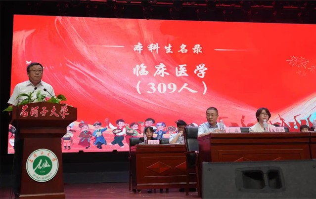 石河子大學黨委常委、副校長,醫(yī)學院黨委書記吳向未、石河子大學第一附屬醫(yī)院院長徐江、石河子大學研究生院副院長李新芝、醫(yī)學院院長馬克濤及全體院領導、各系辦主任、輔導員、班主任出席了此次典禮。此次典禮由醫(yī)學院黨委副書記于磊主持。