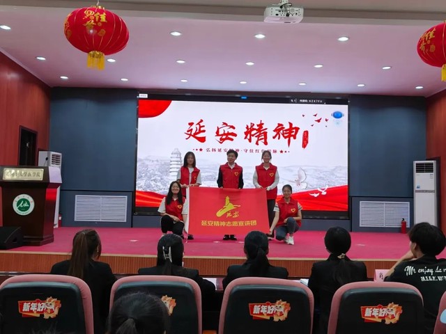 活動尹始,宣講團(tuán)播放了關(guān)于延安歷史和延安精神的短片,該片詳細(xì)講述了延安在中國革命中的重要地位以及延安精神的主要內(nèi)容:堅(jiān)定正確的政治方向、解放思想實(shí)事求是的思想路線、全心全意為人民服務(wù)的根本宗旨、自力更生艱苦奮斗的創(chuàng)業(yè)精神。