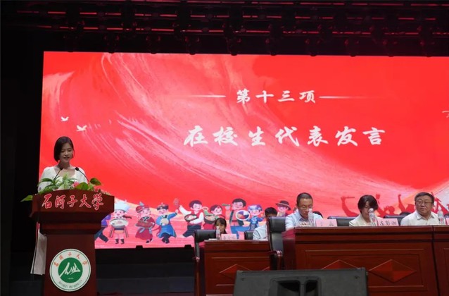 大會第十一項 研究生畢業(yè)生代表孫立明發(fā)言。他用石大是“港灣”是“舞臺”回顧了在石河子大學(xué)醫(yī)學(xué)院求學(xué)的數(shù)載。分享了他通過重重考核成功入職開啟自己“打工人”之旅的背后,是感恩母校為莘莘學(xué)子提供了系統(tǒng)的醫(yī)學(xué)教育、扎實的科研訓(xùn)練,以及探索專業(yè)領(lǐng)域以外的平臺和機(jī)會。