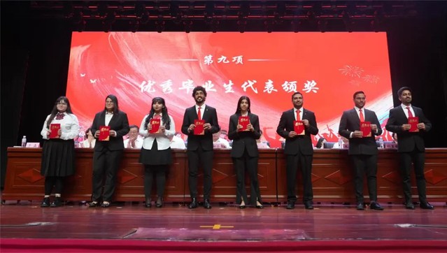 大會第九項 為2024屆校級本科、研究生、留學(xué)生優(yōu)秀畢業(yè)生的學(xué)生代表頒獎。