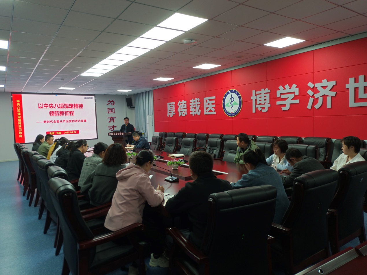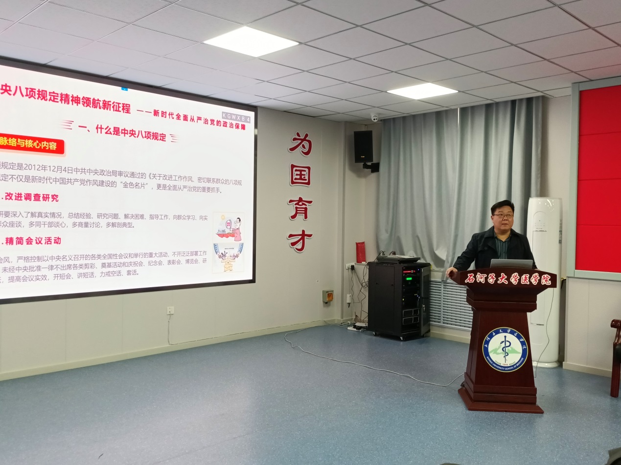 為深入學(xué)習(xí)貫徹黨的二十大精神,持續(xù)推進(jìn)全面從嚴(yán)治黨向基層延伸,2025年4月22日上午,學(xué)院黨委書(shū)記張青同志深入醫(yī)學(xué)教學(xué)實(shí)驗(yàn)中心黨支部,專題宣講中央八項(xiàng)規(guī)定精神,實(shí)驗(yàn)中心全體老師17人參加了學(xué)習(xí)并與學(xué)院領(lǐng)導(dǎo)進(jìn)行了座談交流。