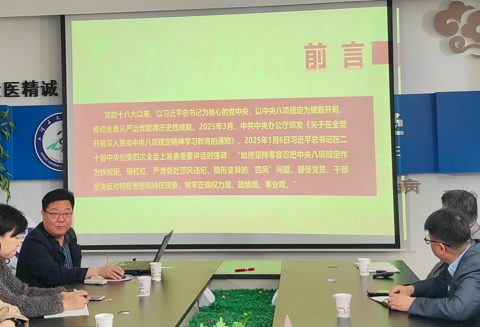 為進(jìn)一步強(qiáng)化黨員干部紀(jì)律意識,推動(dòng)全面從嚴(yán)治黨向縱深發(fā)展,2025年4月24日上午,醫(yī)學(xué)院黨委書記張青同志走進(jìn)預(yù)防醫(yī)學(xué)系黨總支,開展中央八項(xiàng)規(guī)定精神專題宣講。預(yù)防醫(yī)學(xué)系師生黨員齊聚一堂,認(rèn)真聆聽這場意義深遠(yuǎn)的宣講,共同筑牢思想防線。