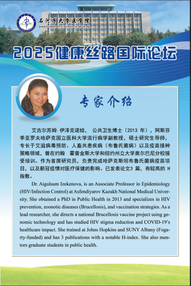 論壇以“聚焦中亞高發(fā)病 ,共筑健康新絲路 ”為主題, 圍繞人畜 共患病、心腦血管疾病、跨境傳染病等區(qū)域高發(fā)病 ,邀請中國、 哈 薩克斯坦、 巴基斯坦等國高校公共衛(wèi)生、基礎醫(yī)學、藥學領域的知 名專家學者, 圍繞會議主題進行主旨報告 ,共同探索健康絲路建設 的新路徑 。 讓我們以本次論壇為紐帶, 架設起連接中亞健康的橋梁。