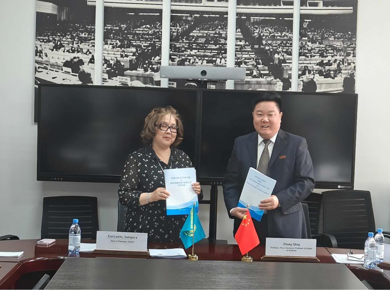 為推動合作項目具體落實,訪問期間舉行了合作協(xié)議簽署儀式。石河子大學(xué)醫(yī)學(xué)院黨委書記張青、藥學(xué)院黨委書記唐輝分別代表各自學(xué)院,與哈薩克斯坦國立醫(yī)科大學(xué)薩基普娃·祖里婭達(dá)·別科季米羅夫娜(Sakipova Zuriyadda Bektemirovna)院長共同簽署了院際合作協(xié)議。協(xié)議的簽署標(biāo)志著雙方合作進(jìn)入了制度化、規(guī)范化的新階段。