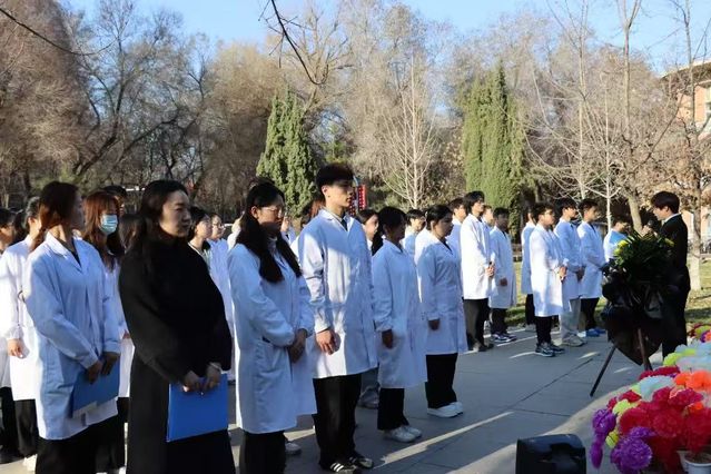 為深切緬懷革命先烈,賡續(xù)紅色血脈,引導(dǎo)廣大團(tuán)員青年深入學(xué)習(xí)革命先輩的光輝事跡,厚植家國(guó)情懷,強(qiáng)化歷史使命感,培育新時(shí)代愛(ài)國(guó)主義精神。4月4日上午,醫(yī)學(xué)院、藥學(xué)院、護(hù)士學(xué)校于南區(qū)王震將軍塑像前開(kāi)展了“青春奮進(jìn),薪火相傳”清明祭英烈主題活動(dòng),共計(jì)110名團(tuán)學(xué)骨干參加此次活動(dòng)。