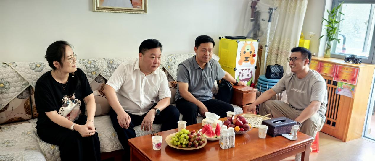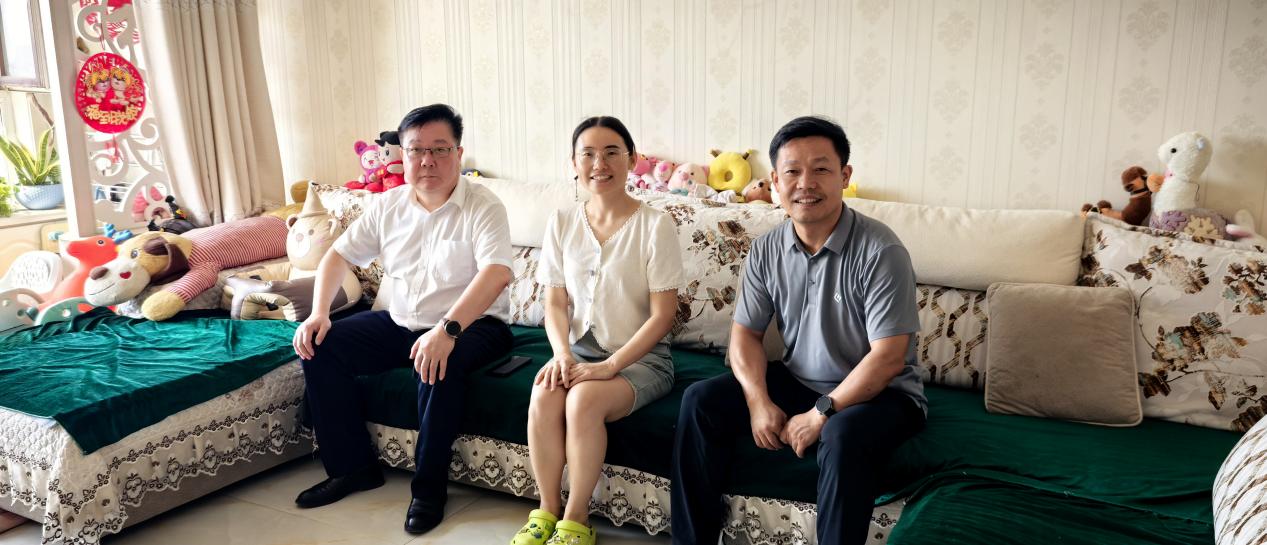 2025年7月30日上午,慰問組先后到教職工唐娜、羅華英、董丹家中,關(guān)切詢問老師們的工作、生活、孩子教育等近況,感謝他們?yōu)閲朗聵I(yè)的付出,并送去慰問品與學(xué)院的祝福。得知王官利老師正忙碌于2025年教育部基礎(chǔ)醫(yī)學(xué)“101計劃”教師發(fā)展研討會的會場籌備時,張青書記一行立刻決定前往工作現(xiàn)場慰問。
