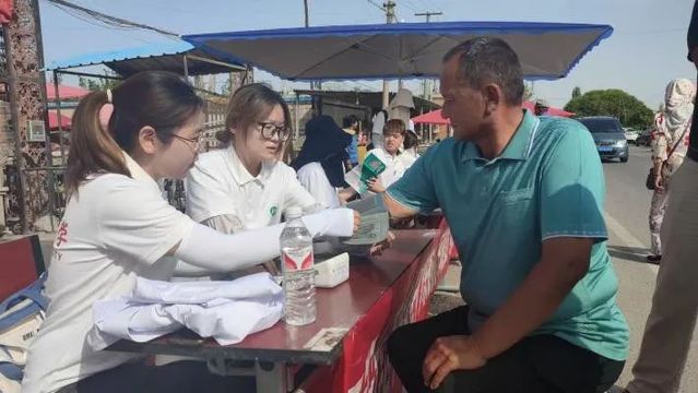 活動現(xiàn)場氣氛熱烈而溫馨,同學(xué)們耐心細(xì)致地為每一位居民測量血壓,針對血壓偏高的患者,不僅在生活方式上提出建議還提醒他們定期去復(fù)查,嚴(yán)格遵循醫(yī)囑服藥,養(yǎng)成健康的生活習(xí)慣。同時給居民發(fā)放《高血壓、冠心病和糖尿病防治手冊》,并由專業(yè)人員進(jìn)行講解。“你們這在巴扎門口測,買個菜的功夫還能順路把血壓測了,比去醫(yī)院方便多了”剛剛測完血壓的李奶奶說道。