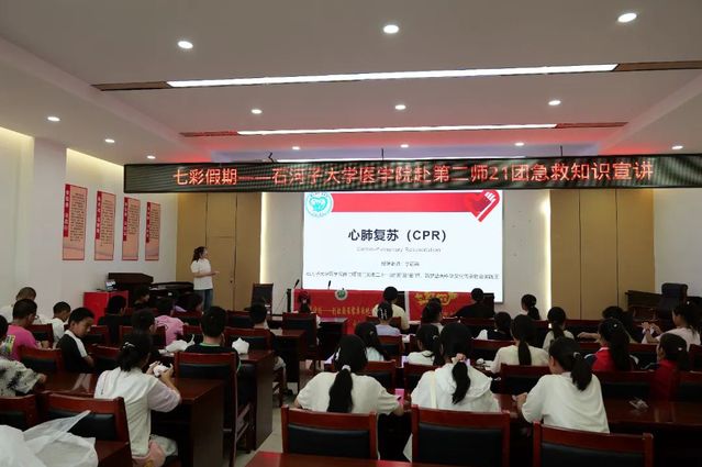 2025年7月7日,第二師鐵門關(guān)市21團(tuán)社區(qū)活動(dòng)中心洋溢著濃厚的學(xué)習(xí)氛圍。來自石河子大學(xué)醫(yī)學(xué)院赴二師鐵門關(guān)市二十一團(tuán)“醫(yī)”路“童”行,筑夢(mèng)藍(lán)天中華文化傳承社會(huì)實(shí)踐團(tuán)師生們,化身生命的守護(hù)者,為該社區(qū)的五年級(jí)學(xué)生及其家長(zhǎng)們呈現(xiàn)了一場(chǎng)內(nèi)容詳實(shí)的心肺復(fù)蘇(CPR)急救知識(shí)講座。他們憑借扎實(shí)的專業(yè)知識(shí)和滿腔熱忱,成功點(diǎn)燃了全民急救意識(shí)的星星之火,使在場(chǎng)的每一個(gè)人都深刻領(lǐng)悟到學(xué)習(xí)急救知識(shí)的重要性。