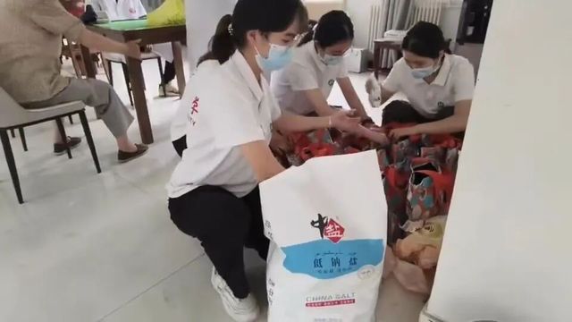活動(dòng)中,醫(yī)學(xué)院學(xué)子化身“健康科普員”,結(jié)合老年人自身的疾病,用方言為老年人講解用藥說(shuō)明,解答他們的疑問。同時(shí),醫(yī)護(hù)人員與學(xué)子們配合,將常用藥品、加碘鹽和健康標(biāo)語(yǔ)圍裙送到老人手中,叮囑按時(shí)吃藥、清淡飲食,讓溫暖直抵人心。
