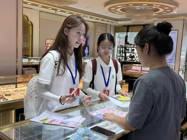 實(shí)踐團(tuán)成員在周邊商鋪進(jìn)行宣講 周沿錚供圖