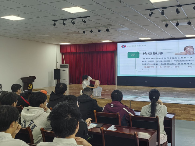 在心肺復(fù)蘇急救技能宣講環(huán)節(jié),實(shí)踐團(tuán)成員利用模擬人進(jìn)行現(xiàn)場(chǎng)演示,詳細(xì)講解了心肺復(fù)蘇的操作步驟,包括判斷意識(shí)、胸外按壓、開放氣道、人工呼吸等,并邀請(qǐng)居民上臺(tái)進(jìn)行實(shí)操練習(xí),手把手糾正他們的動(dòng)作,確保每位參與者都能掌握正確的急救方法。居民們積極參與,認(rèn)真學(xué)習(xí),現(xiàn)場(chǎng)氣氛熱烈。