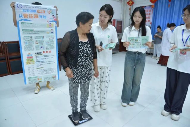 同步進(jìn)行的BMI指數(shù)篩查區(qū)排起長(zhǎng)隊(duì)。團(tuán)隊(duì)成員攜帶卷尺、體重秤等設(shè)備,為每位居民現(xiàn)場(chǎng)測(cè)算并解讀數(shù)據(jù)。“您的BMI 為26.3,屬于超重,建議每日減少300大卡攝入。”團(tuán)隊(duì)將抽象數(shù)字轉(zhuǎn)化為具體行動(dòng)方案,結(jié)合個(gè)體情況推薦膳食調(diào)整與運(yùn)動(dòng)處方。和藹的居民奶奶聽著團(tuán)隊(duì)成員的介紹講解,恍然大悟:“原來‘壯實(shí)’不等于健康!”篩查不僅提供即時(shí)健康評(píng)估,更成為營(yíng)養(yǎng)宣講的實(shí)踐延伸。