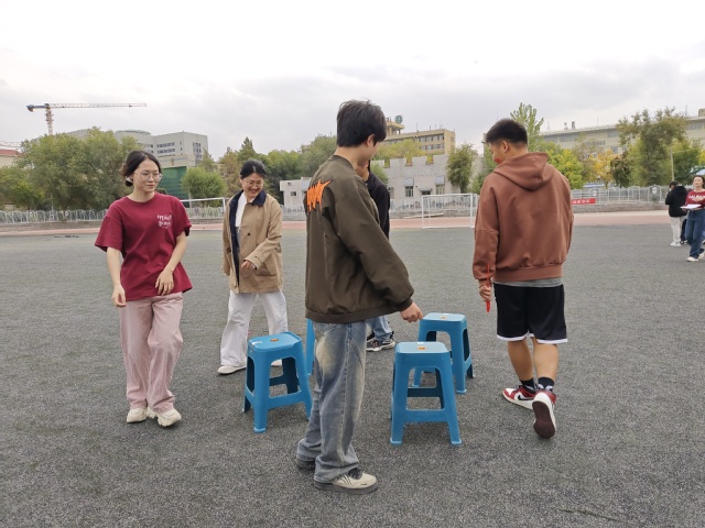 活動(dòng)中,大家手臂搭著彼此的肩膀,互相攙扶,調(diào)整節(jié)奏后繼續(xù)前進(jìn)。各比賽場(chǎng)地氣氛熱烈,同學(xué)們?cè)诒荣愔谢ハ喙膭?lì),在協(xié)作中增進(jìn)了解。在備受期待的搶凳子游戲環(huán)節(jié)中,老師們與同學(xué)們同場(chǎng)競(jìng)技,將現(xiàn)場(chǎng)氣氛推向高潮。