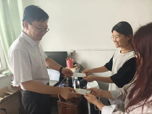 賀卡外觀簡潔素雅,背面是油畫風(fēng)的風(fēng)景與鮮花,正面由系內(nèi)同學(xué)親筆寫下祝福,文字質(zhì)樸,情感真摯,還有可愛的簡筆畫加以修飾。學(xué)生代表表示,賀卡雖小,卻凝聚著全體同學(xué)對老師悉心教誨的感恩與敬意,承載著師生間的深厚情誼。贈送現(xiàn)場溫馨莊重,老師們接過賀卡,微笑致謝,回以勉勵,勉勵同學(xué)們秉持嚴謹治學(xué)精神,勇?lián)残l(wèi)生使命。
