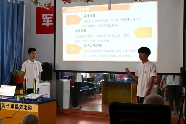 實踐團(tuán)在軍墾養(yǎng)老院進(jìn)行血壓健康知識宣講