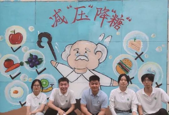 圖為實(shí)踐團(tuán)慢性病知識(shí)墻繪活動(dòng)合影
