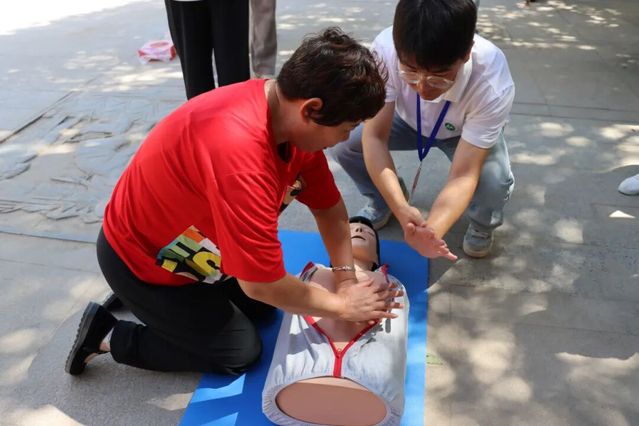 團隊在第三師御景苑社區(qū)廣場開展宮頸癌知識宣講與急救實操培訓,教授群眾心肺復蘇、海姆立克急救法等關鍵技能;在醫(yī)院病房為居民講解傷口包扎、心肺復蘇等實用技能,讓急救知識從課堂走向生活,提升基層群眾應急救護能力。
