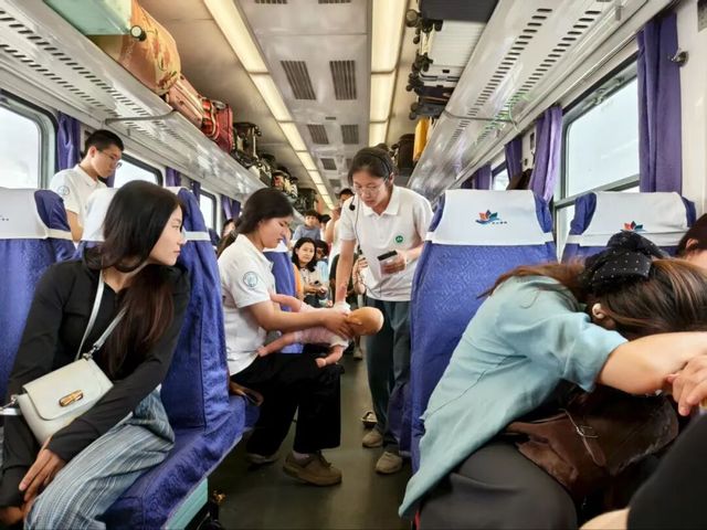 圖為實(shí)踐團(tuán)在移動(dòng)列車(chē)上科普急救知識(shí)