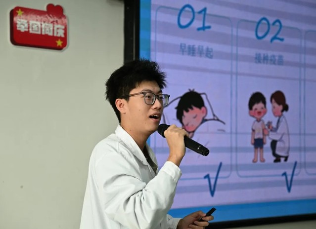 志愿者們放慢語速、加大肢體動作幅度,細致講解作息規(guī)律、疫苗接種、合理飲食等健康要點,每講完一個知識點便及時開展互動。針對部分孩子的理解差異,志愿者們蹲下身來,手把手演示 “七步洗手法”,將抽象的健康知識轉(zhuǎn)化為可直接模仿的具體動作,讓孩子們在實操中輕松掌握防護技能。
